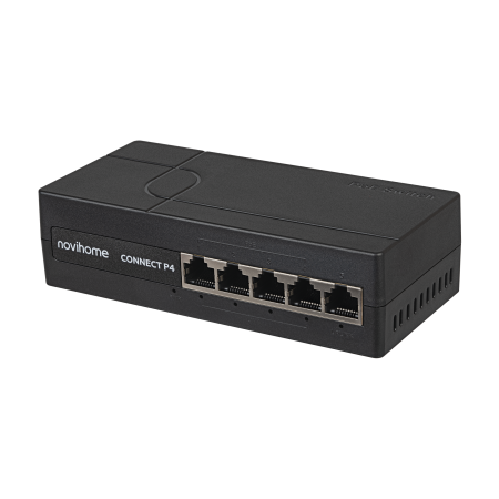 Novihome CONNECT P4 это компактный и удобный 5 портовый коммутатор со скоростью 10/100 Мбит/с, оснащённый четырьмя PoE портами для питания и объединения сетевых устройств без дополнительных блоков питания. Благодаря поддержке технологий PoE коммутатор автоматически определяет совместимые устройства и подает на них питание по тому же кабелю, по которому передаются данные что значительно упрощает монтаж и экономит время.